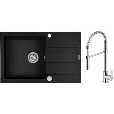 Zestaw Pyramis Naxos zlewozmywak granitowy 79x50 cm z baterią kuchenną Oltens Duf czarny mat/chrom (070174301, 35203100)