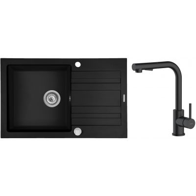 Zestaw Pyramis Naxos zlewozmywak granitowy 79x50 cm z baterią kuchenną Oltens Myvat czarny mat (070174301, 35205300)