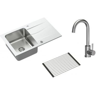 Zestaw Quadron Michael 111 zlewozmywak 78x48 cm alabaster/stal z baterią Kate i matą ociekową (FUSM7848BI3623500BS, R3825BLMP)