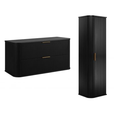 Opis zestawu Zestaw Rodan Elegance szafka z blatem 100 cm podumywalkowa wisząca z szafką 139 cm boczną czarny (5906154453868, 5906154450355)