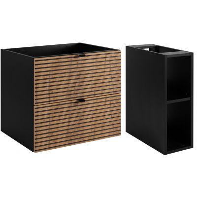 Opis zestawu Zestaw Rodan Loft szafka 60 cm podumywalkowa wisząca z szafką 20 cm boczną czarny/dąb (5906154450935, 5906154452120)