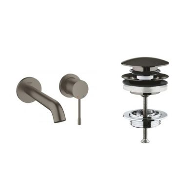 Zestaw Grohe Essence New bateria umywalkowa podtynkowa z korkiem Brushed Hard Graphite (19408AL1, 65807AL0)