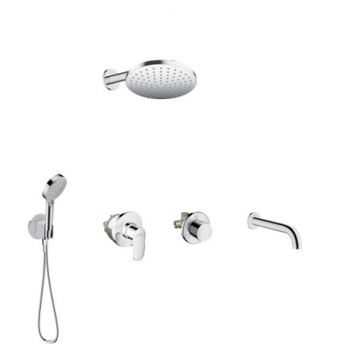 | W zestawie: | bateria z przełącznikiem, deszczownica, wylewka wannowa, słuchawka prysznicowa, wąż prysznicowy, ramię natrysku, przyłącze kątowe |